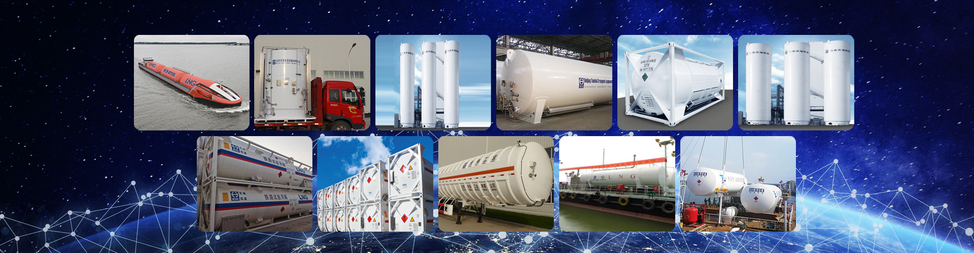 我公司已取得ISO9001:2000证书、中国压力容器制造许可证(包括A2第Ⅲ类低中压容器、C2汽车罐体、C3罐式集装箱)、欧盟PED和TPED认证、德国AD2000-Markblatt认证、澳大利亚/新西兰AS认证、马来西亚DOSH认证等压力容器证书,可根据用户的要求分别按照中国压力容器标准,AD2000-Merkblatt, 欧盟EN标准,澳大利亚/新西兰AS1210等标准设计制造不同压力等级,容积为2M3至350M3的固定式立式或卧式低温贮罐、5M3至50M3汽车罐车及低温罐式集装箱、低温汽车罐车、LNG撬装站、LNG加气站项目等。